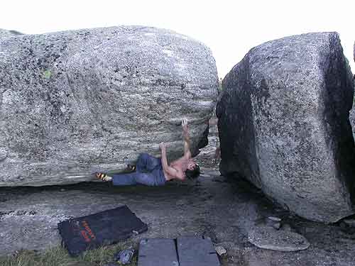 POSITION: Just near the town of Covilha in central Portugal. The blocs are scattered all over a high plateau at 850m, so it is a lot cooler than the surrounding area. They get snow in winter and cool well in the evening, plus clear nights bring an excellent boulders chill to the rock for the following day.