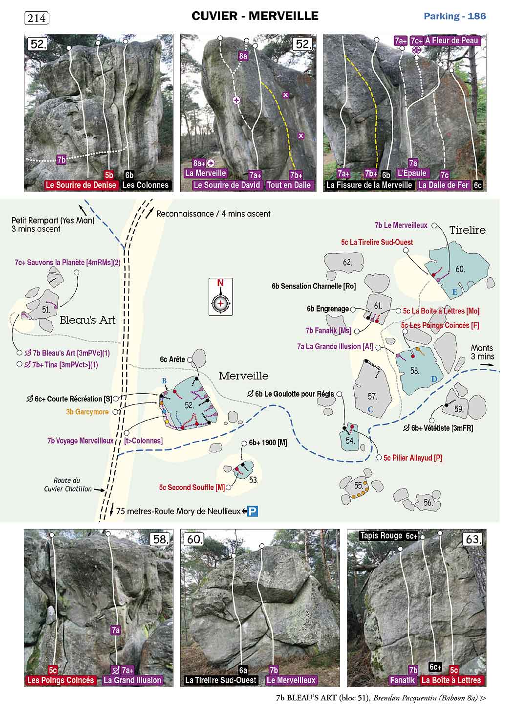 This is the perfect guidebook for those who know Fontainebleau already and are looking for the quieter and more secret spots. Vol 1. covers the main central sections of popular places such as Bas Cuvier . In this book, all of the outlying areas are covered, such as Cuvier Ouest, Nord, Rempart, Merveille, Monts and Reconnaisance. Essentially the book overlaps Fun Bloc with all the areas that are farther to walk from the car parks. All of the 49 areas to the left are covered in detail, with over 9000 problems.